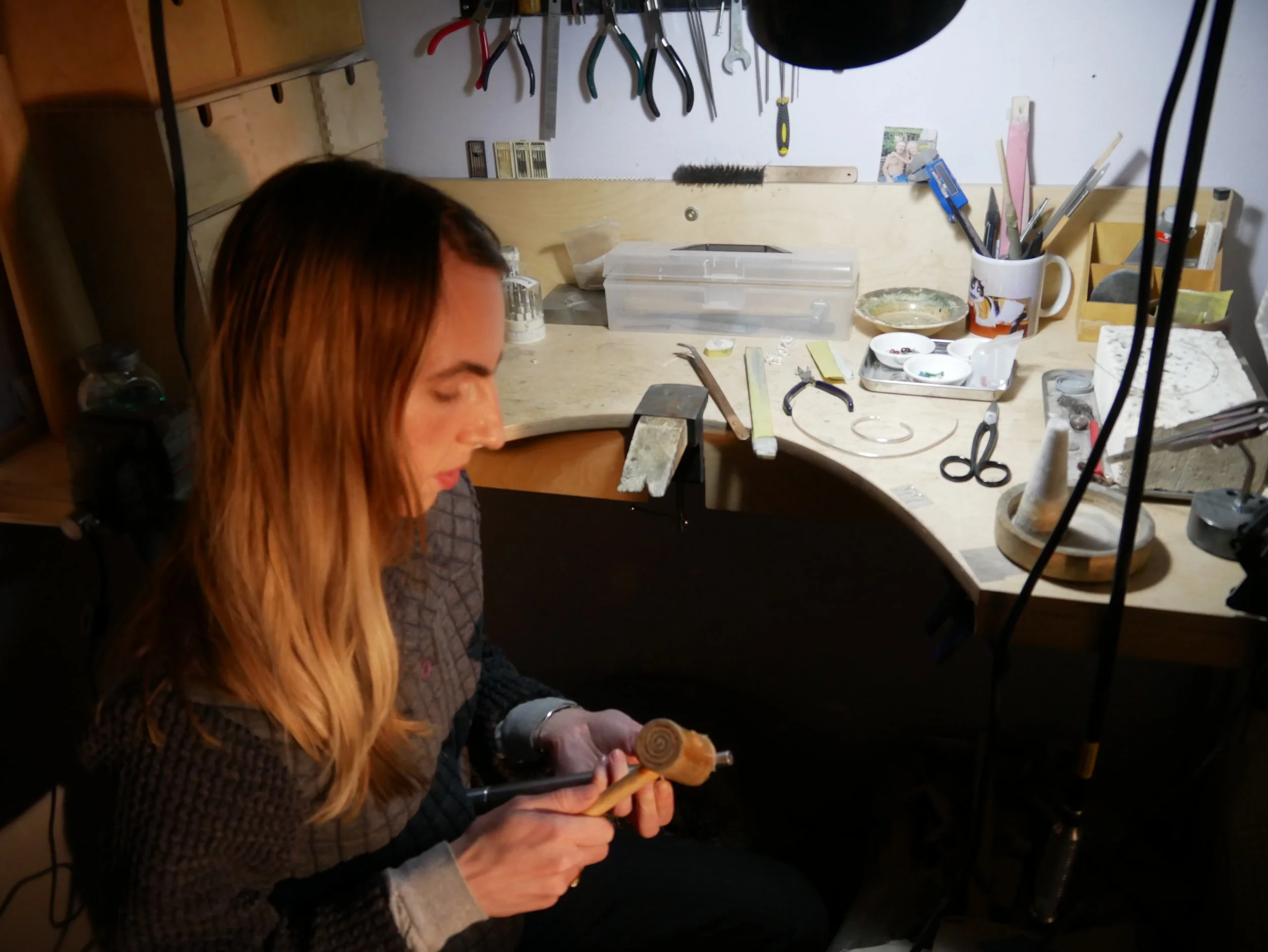Karabaza forges her jewelry at her studio in East Vancouver, Canada, on unceded and unsurrendered ancestral territories of the xʷməθkʷəy̓əm (Musqueam), Sḵwx̱wú7mesh (Squamish), and səlilwətaɬ (Tsleil-Waututh) Nations and Halkomelem speaking people.